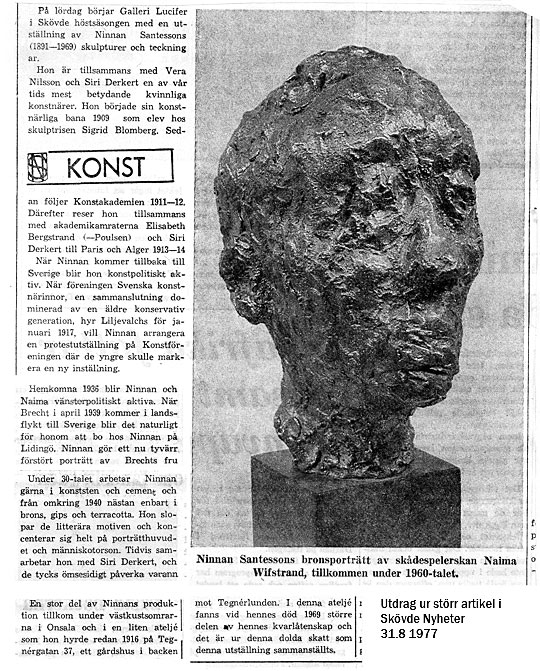 Jag vet att ”gipsen” till skulpturen fanns kvar när försvinnandet upptäcktes. Eftersom Lena Santesson-Carlson, Ninnans dotter, erbjöd Skövde kommun att de kunde få gjuta en nytt huvud. Om den möjligheten fortfarande finns, vet jag inte – och Lena är tyvärr död sedan flera är.