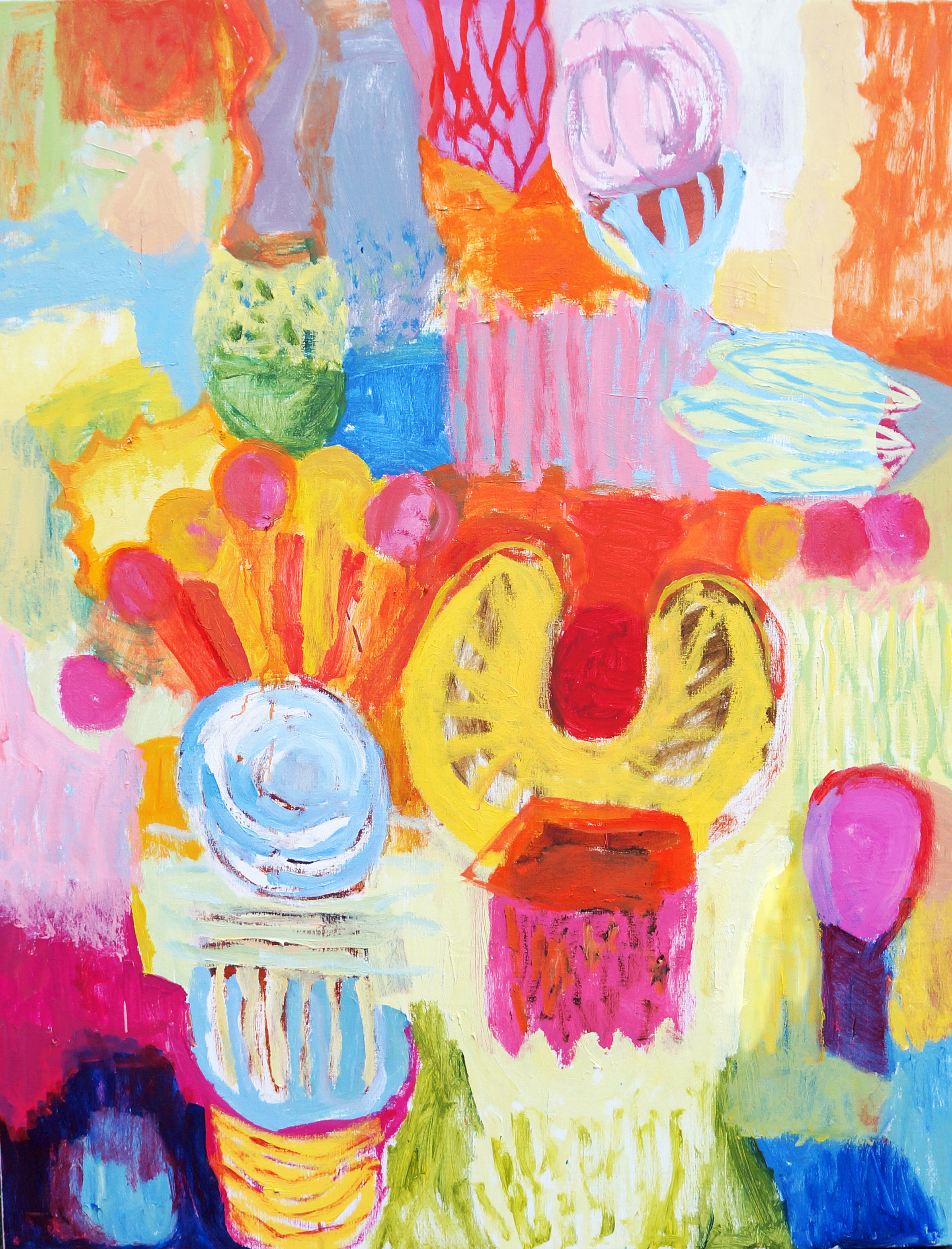– Det är min frizon, mitt rum att vara fri och obunden i. Jag har ett behov att uttrycka mig fritt från yttre krav. Hon gör målningar med mycket färg och många former. De föreställer saker från livet som inte går att prata om. – Färgerna och formerna är ett språk som är sig själv nog. De behöver inte översättas eller tolkas, säger hon. Det finns väl egentligen inget direkt föreställande eller igenkännbart. – Ibland tycker jag mig känna igen ett föremål, ibland tycker sig en betraktare se ett annat. Man kan ana föremål och verklighetsfragment men inte identifiera dem. Empati, eller säg inkännande fungerar bättre. Ibland kan hon själv förstå vad det är och ibland inte.