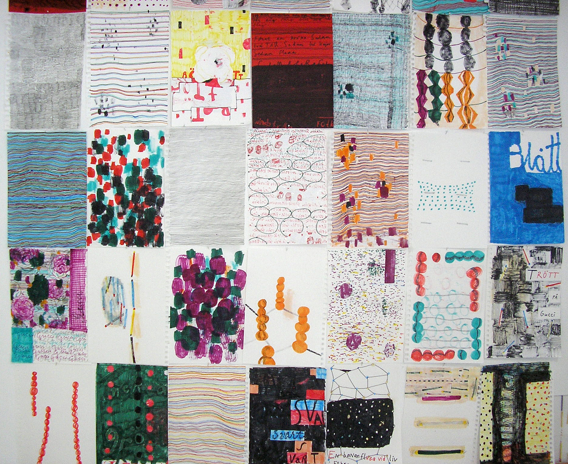 Utan MOBIL TV DATORER – men med KRITOR FÄRG BLOCK PENNOR och en AKUSTISK GITTARR och en ny kortlek från färjan med SAGAN OM RINGEN-motiv — vilken vi också lyssnade till under bilresan ner med alltmer stigande Ångest, raka Armar, glansig Blick och FÖRBIvisslande Audis och BMVW’s – fanns alltså inte mycket annat att göra än att gilla läget och börja rita o måla.