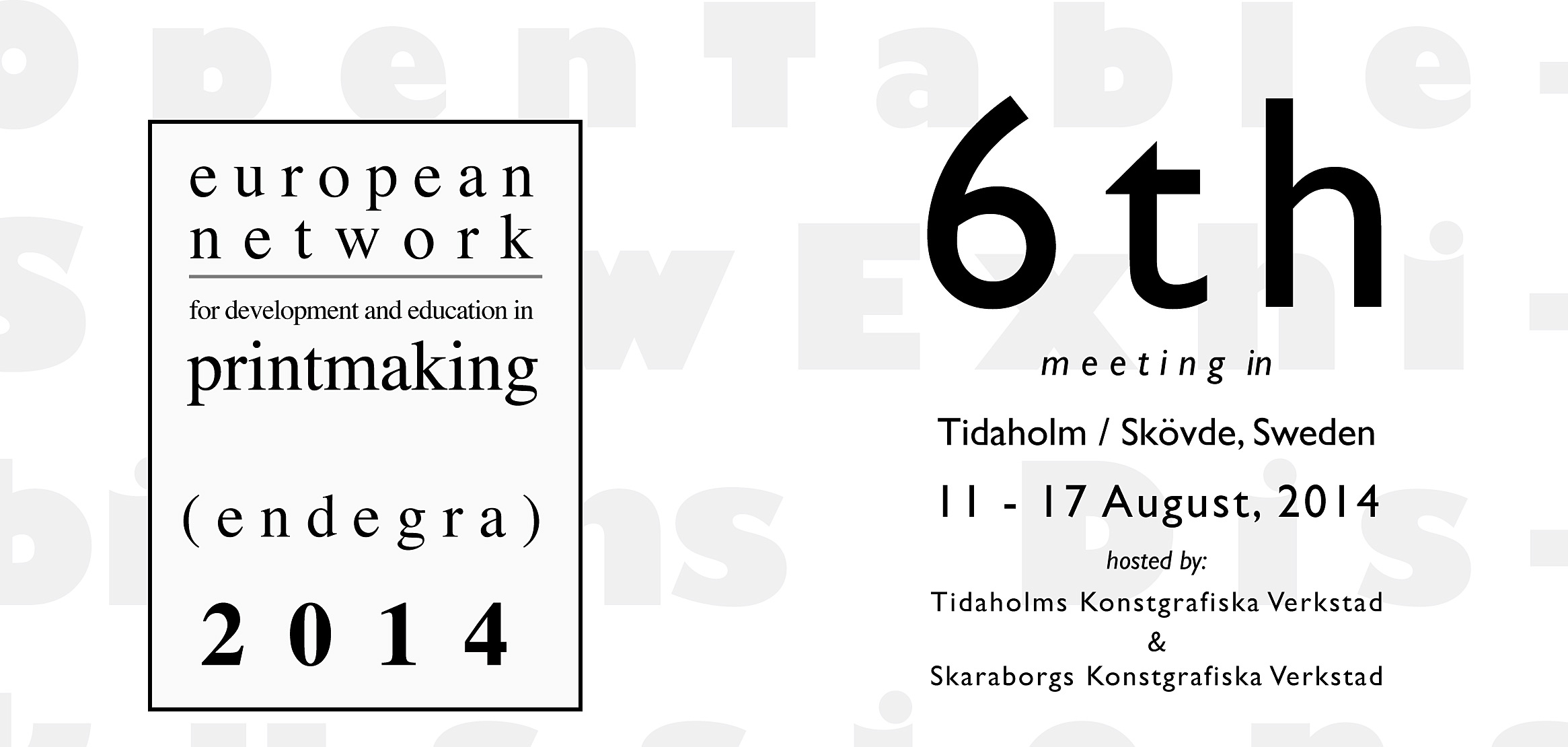 11–17 augusti kommer ett fyrtiotal grafiska konstnärer från Tyskland, Storbritannien, Benelux, Baltikum, Grönland och Norden till Skaraborg. Det är dags för sjätte Endegra-mötet, och den här gången delas värdskapet mellan Litografiska Akademin i Tidaholm och Skaraborgs Konstgrafiska Verkstad i Skövde. Under veckan kommer de deltagande konstnärerna att arbeta i bägge städernas verkstäder, utbyta erfarenheter och kunskap, göra utflykter samt diskutera framtiden.