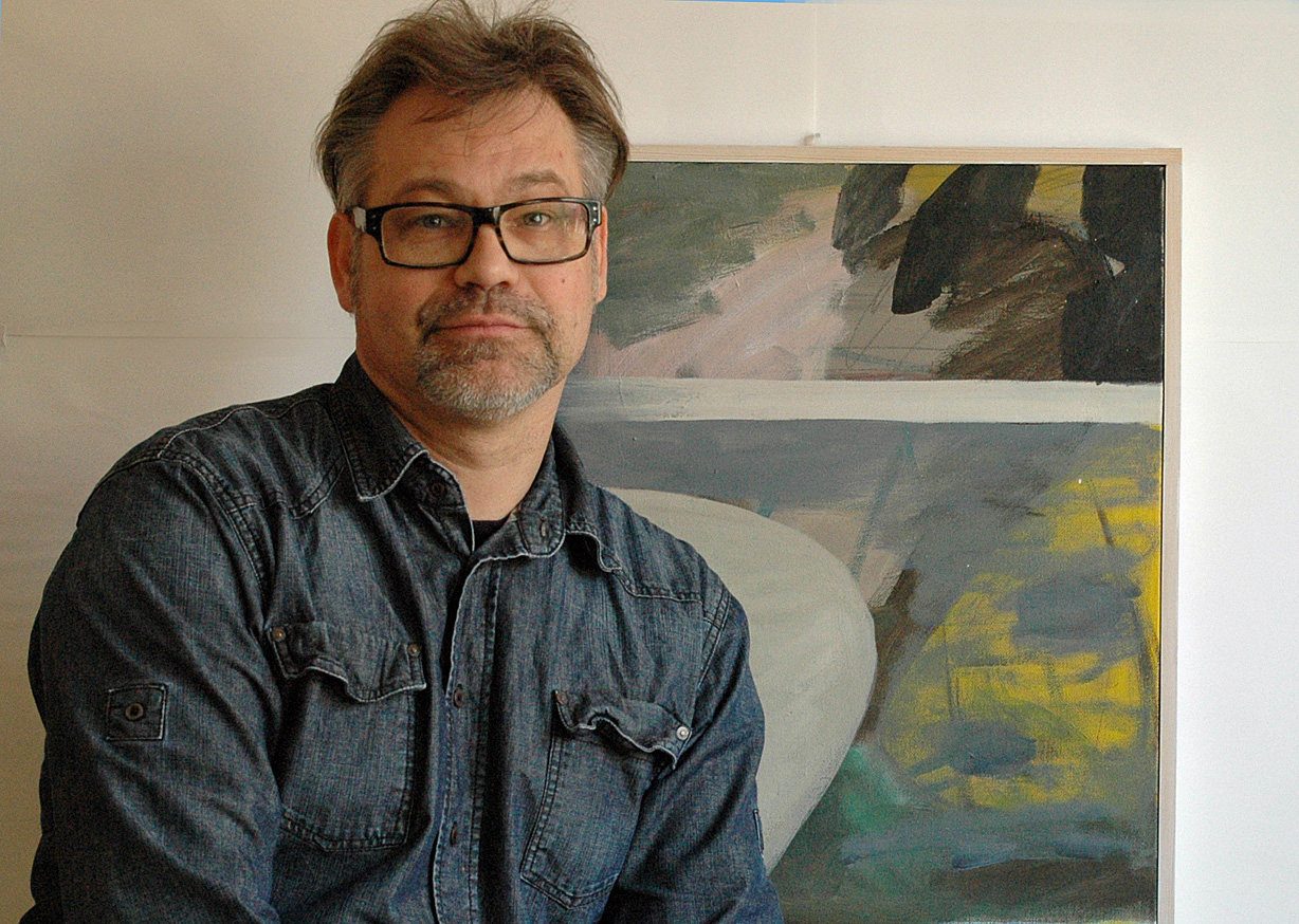 Göran Magnusson vid sin målning ”Figur 1”