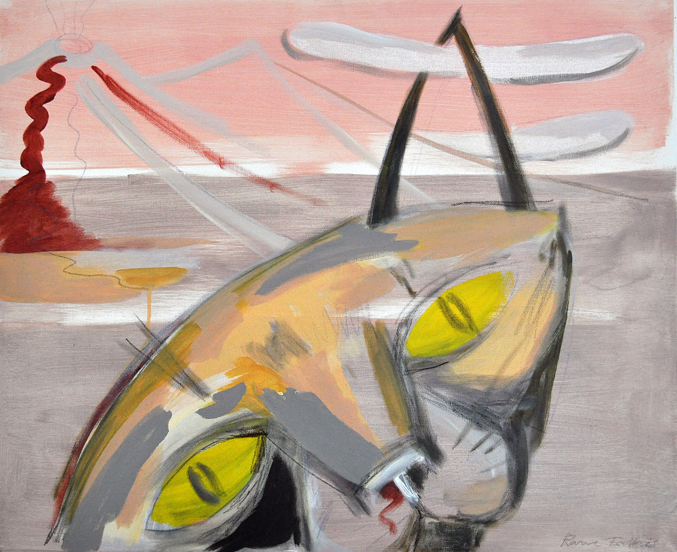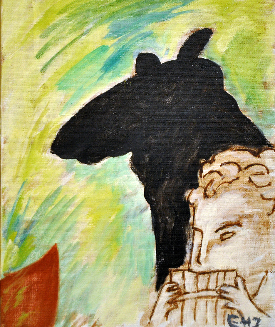 Från att ha gjort figurer och ”sura gubbar” upptäcker jag att djuren smyger sig in i mina bilder/målningar igen. De dyker upp i olika miljöer som aktörer och ställföreträdare för oss människor.