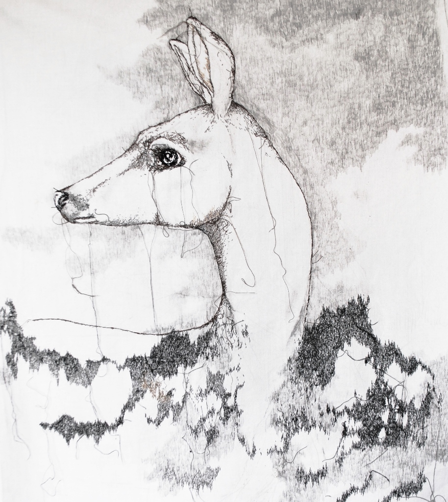 Ida Lundell Vad är det som är viktigt, vem är det som säger det? Ida samlar vardagliga ögonblick, tankar och skeenden och bearbetar dem genom teckning och broderi. Den långsama tekniken står i kontrast till bildernas ögonblickskaraktär. Flyktigheten förvandlas till en skör sanning. En bild är bara en bild, en minnesanteckning som förändras i takt med nålens arbete över tyget.