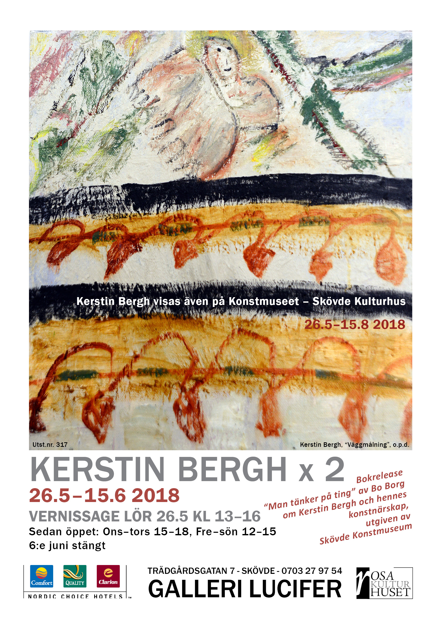 Dessutom släpps den nya stora boken ”Man tänker på ting” av Bo Borg om Kerstin Bergh och hennes konstnärskap, utgiven av Skövde Konstmuseum, så rubriken Kerstin Bergh gånger 2 borde kanske vara Kesrtin Bergh x 3.